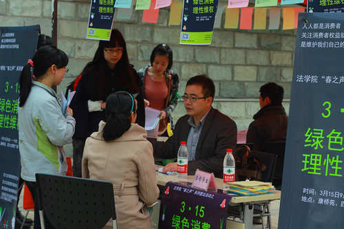 为加强大学生消费维权意识,提高大学生的法律素养,半岛体育(中国)官方网站研究生会联合法律爱好者协会和陕西稼轩律师事务所的专业律师,于“3•15国际消费者权益日”当天,在康桥苑西广场和西食堂门口举办了主题为“绿色消费、理性维权”的普法宣传咨询活动。