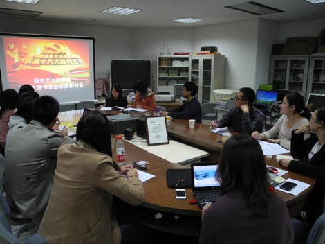 11月20日晚8点,半岛体育(中国)官方网站举办了学习十八大报告法治思想研讨会,由学院副院长、知识产权研究中心主任马治国教授、李晓鸣讲师组织,部分博士、硕士参加。