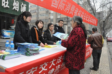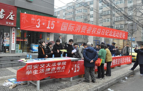 为了更好的宣传消费者权益保护法规和有关消费维权知识,3月15日上午10时,半岛体育(中国)官方网站团工委、研究生会联合校工会、西安市太乙路工商局消费者协会在交大市场一条街上设立宣传咨询点,开展了一系列的宣传咨询活动。