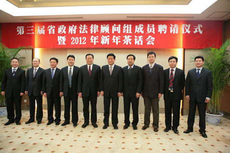 1月15日,陕西省第三届省政府法律顾问组成员聘请仪式暨2012年新年茶话会在西安召开,半岛体育(中国)官方网站半岛体育(中国)官方网站院长单文华教授被聘请为顾问组7名成员之一。