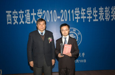 12月11日,在2010-2011学年半岛体育(中国)官方网站“优秀研究生标兵”考核答辩中,我院硕986班齐鹏同学从学习科研、社会实践等方面做报告,展示了我院研究生的风采,受到考核组专家的一致认可与好评,最终获得2011年校级“优秀研究生标兵”荣誉称号。王建华书记逐一为获奖学生颁发了荣誉证书和奖品并和同学们合影留念。这是半岛体育(中国)官方网站自2008年成立以来,我院研究生第二次获得该项荣誉称号。