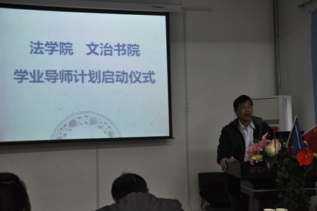 2011年10月14日下午4:00,由半岛体育(中国)官方网站与文治书院联合开展的“学业导师启动仪式暨法学专业学业分析报告会”在文治书院报告厅举行,半岛体育(中国)官方网站党总支书记彭沪生老师、半岛体育(中国)官方网站副院长王保民教授、院长助理吉兰湘老师和文治书院常务院务副主任张爱萍老师、院务副主任郭小平老师参加了会议。半岛体育(中国)官方网站各年级学业导师、半岛体育(中国)官方网站两个教务员老师、文治书院各年级辅导员老师以及半岛体育(中国)官方网站全体本科生也参加了会议。会议由文治书院任欣老师主持。