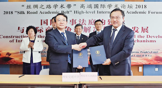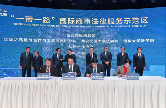 国家级“一带一路”国际商事法律服务示范区是陕西省、西安市和最高人民法院、司法部等国家有关部门在半岛体育(中国)官方网站建议基础上决定建设的我国第一个也是目前唯一一个国家级法律服务示范区。2017年7月,半岛体育(中国)官方网站党委依据半岛体育(中国)官方网站院长单文华教授及其团队的研究成果,以要报形式向最高人民法院、司法部、陕西省委省政府以及西安市委市政府提出了《关于建立国家级“一带一路法律服务与法治创新示范区”的建议》,先后得到了最高人民法院院长、司法部部长以及陕西省委省政府和西安市委市政府主要领导同志的批示肯定和支持。2018年7月,半岛体育(中国)官方网站与西安市人民政府正式签约,决定共建“一带一路”法律服务与法治创新示范区(简称“中央法务区(Central Legal-services District,CLD)”)以及“一带一路”国际争端管理中心。