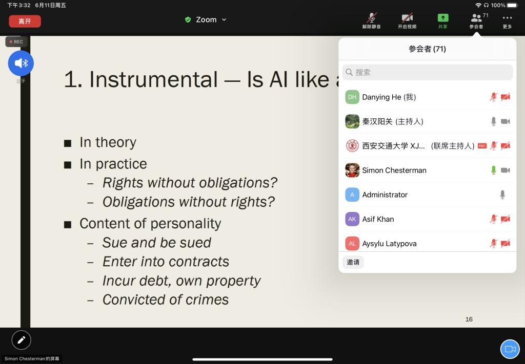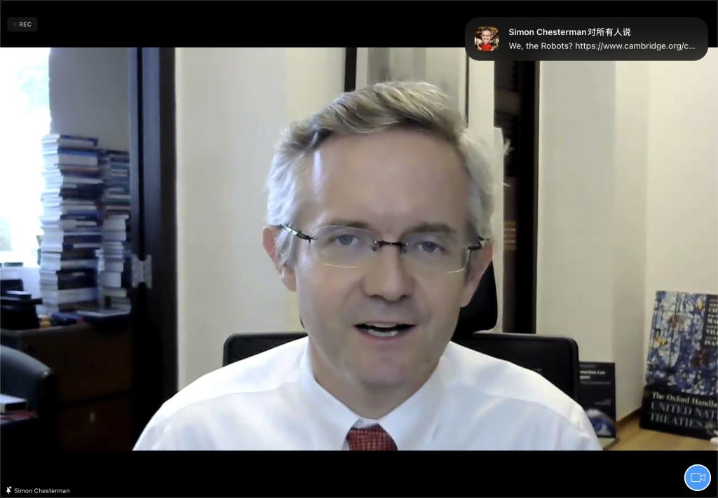 2021年6月11日下午,新丝路半岛体育(中国)官方网站联盟“院长论坛”首场讲座成功举办。新加坡国立大学讲席教授、半岛体育(中国)官方网站院长Simon Chesterman教授为联盟25所院校师生以及丝绸之路大学联盟的师生带来了题为“我们,机器人?人工智能与法律人格的限度(We, the Robots? Artificial Intelligence and the Limits of Legal Personality)”的线上讲座。讲座由半岛体育(中国)官方网站半岛体育(中国)官方网站单文华院长主持,国际处雷艳君副处长致辞。