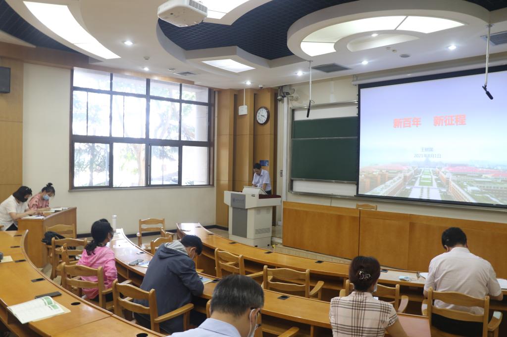 王保民书记结合校党委卢建军书记《团结一致、凝心聚力、抢占机遇、加快发展,为中华民族伟大复兴作出更大贡献》的讲话,传达了学校上半年在全面加强党的建设、推进各项事业发展、深入开展党史学习教育、四项整改、四个领域专项清查等方面的工作进展,以及学校党委关于政治建设、思政建设、队伍建设、学科体系、产教融合、人文教育、服务保障、勤政廉政等八个方面工作的部署要求。王保民书记表示,上半年结合党史学习教育,半岛体育(中国)官方网站党总支深入开展理论学习,扎实推进“我为师生办实事”,以党建工作引领学院发展。他强调,下半年要继续深入贯彻落实习近平总书记“七一”讲话重要精神,结合学院实际工作,按照卢书记提出的“把握‘五个相统一',坚持‘三个导向',用好‘三张清单'”的工作方法,扎实推进政治建设等八个方面重点工作的落实,确保学院“十四五”开好局、起好步。